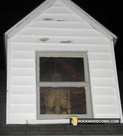 We're not too worried, James. That "nice wood" you're looking at is actually vinyl siding, so rot seems pretty unlikely. What does concern us is that the attic in which that skeleton resides lacks an appropriate layer of insulation, so if we don't get some up there soon, we'll pay for it through higher gas bills. Brrrrr!